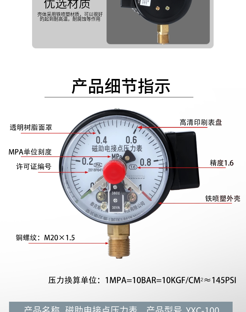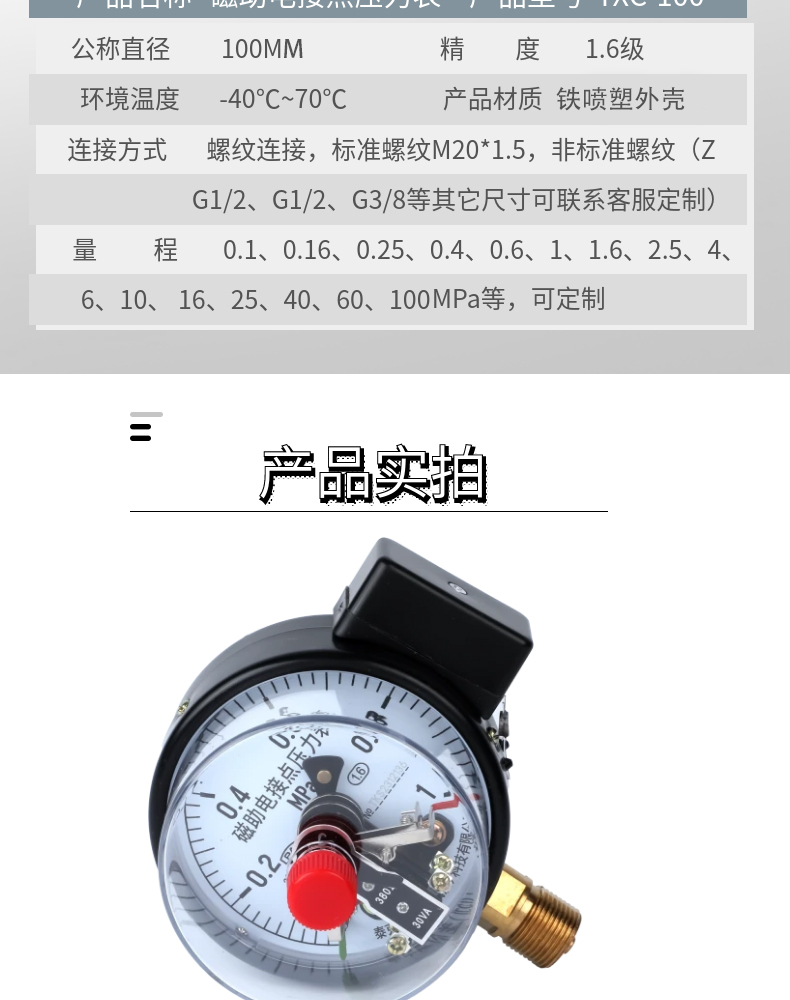 磁助电接点压力表 YXC-100
