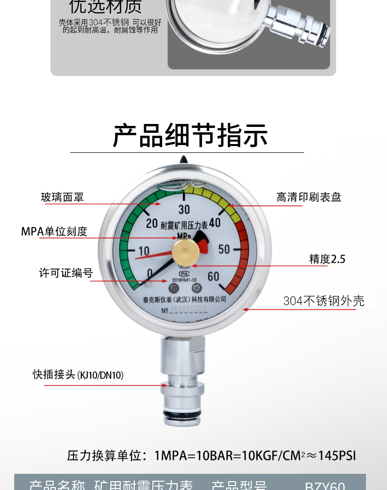 矿用压力表 BZY60